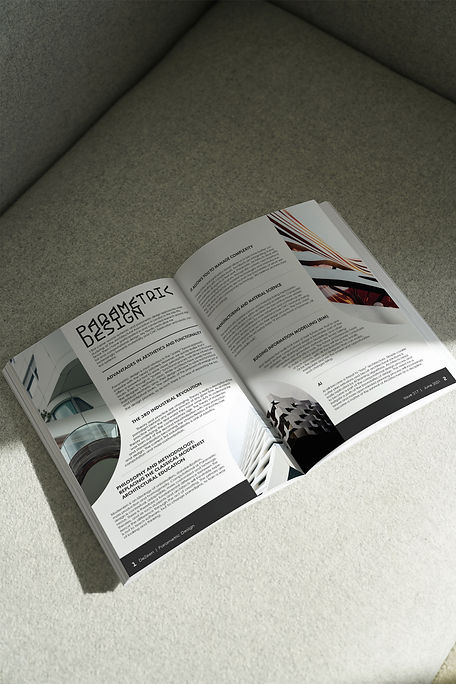 Focus on parametric design as magazine headline to design editorial layout.